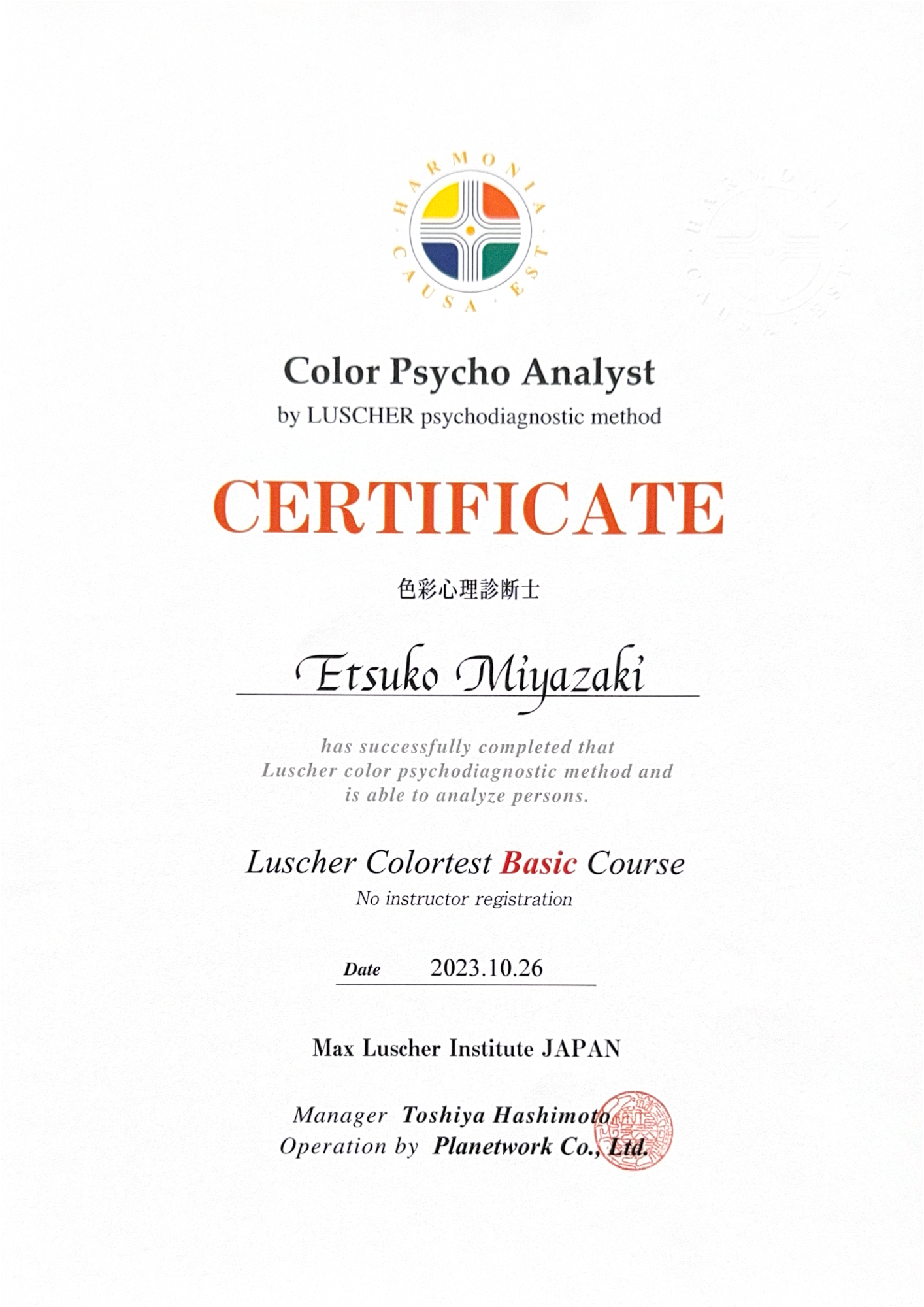 ● リュッシャー研究所日本本部認定「色彩心理診断士」